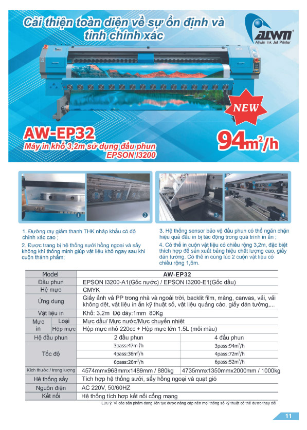 Allwin Ink Jet Printer AW-EP32 Máy in khổ 3,2m sử dụng đầu phun EPSON 13200 94m²/h
