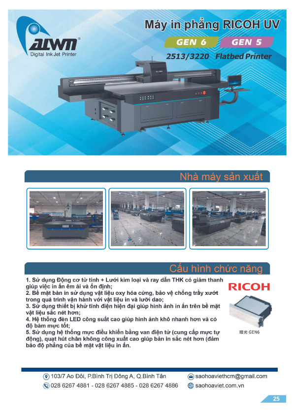 5. Sử dụng hệ thống mực điều khiển bằng van điện từ (cung cấp mực tự động), quạt hút chân không công xuất cao giúp bản in sắc nét hơn (đảm bảo độ phẳng của bề mặt vật liệu in ấn.