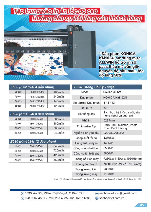 Với ưu điểm sử dụng đầu phun KM1024i tốc độ cao