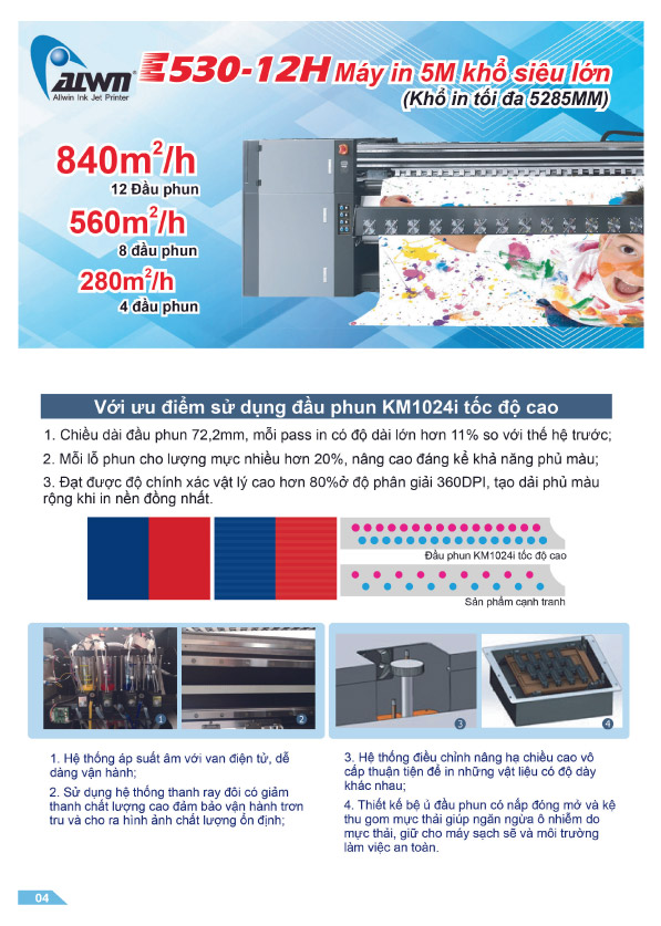 Với ưu điểm sử dụng đầu phun KM1024i tốc độ cao
