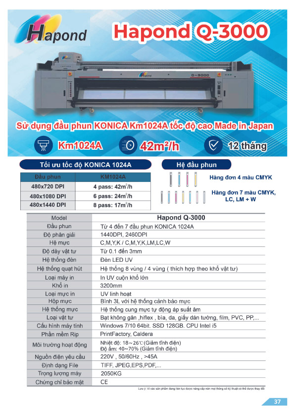 Sử dụng đầu phun KONICA Km1024A tốc độ cao Made in Japan