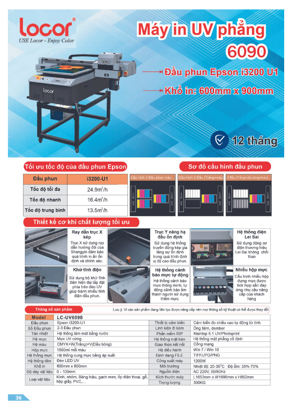 Khứ tĩnh điện: Sử dụng bộ khử tĩnh điện hiện đại lắp đặt phía trên đèn UV giúp tránh nhiều tỉnh điện đầu phun.
