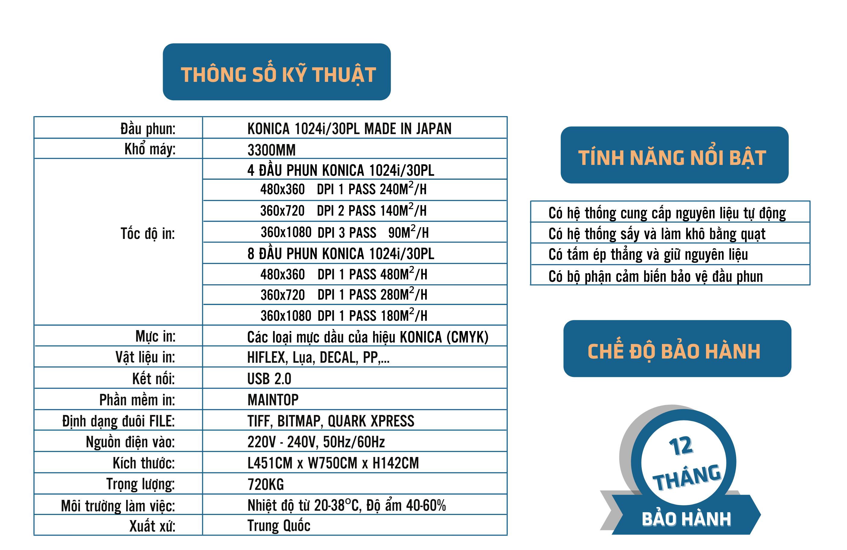 Máy in C8/1024i/30PL Đầu phun Konica Nhật BảnThông số kỹ thuật & Tính năng nổi bật của máy:
